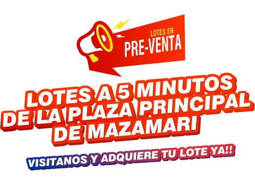 La Urbanización Sol Naciente se encuentra ubicado a solo 5 minutos de la Plaza Principal de Mazamari, a una cuadra de la pista y a espaldas del Grass La Curva. Aquí podrás adquirir lotes desde 160m2 hasta 250m2. Nuestro proyecto contará con acceso a los servicios básicos, asimismo, garantizamos titulo de propiedad independiente.